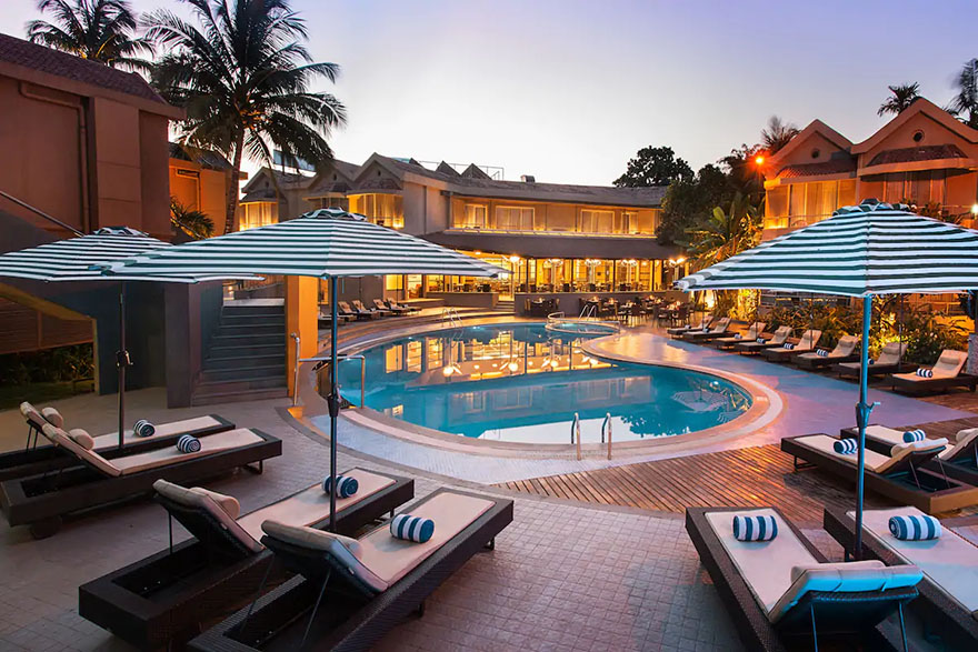 Waves for Seafood and Italian Cuisine, Zeebop for Goan and North-Indian Cuisine, Home for European Cuisine, Smugglers Inn for British Cuisine, Bean Me Up for American, and Kamaxi Hotel for Goan food